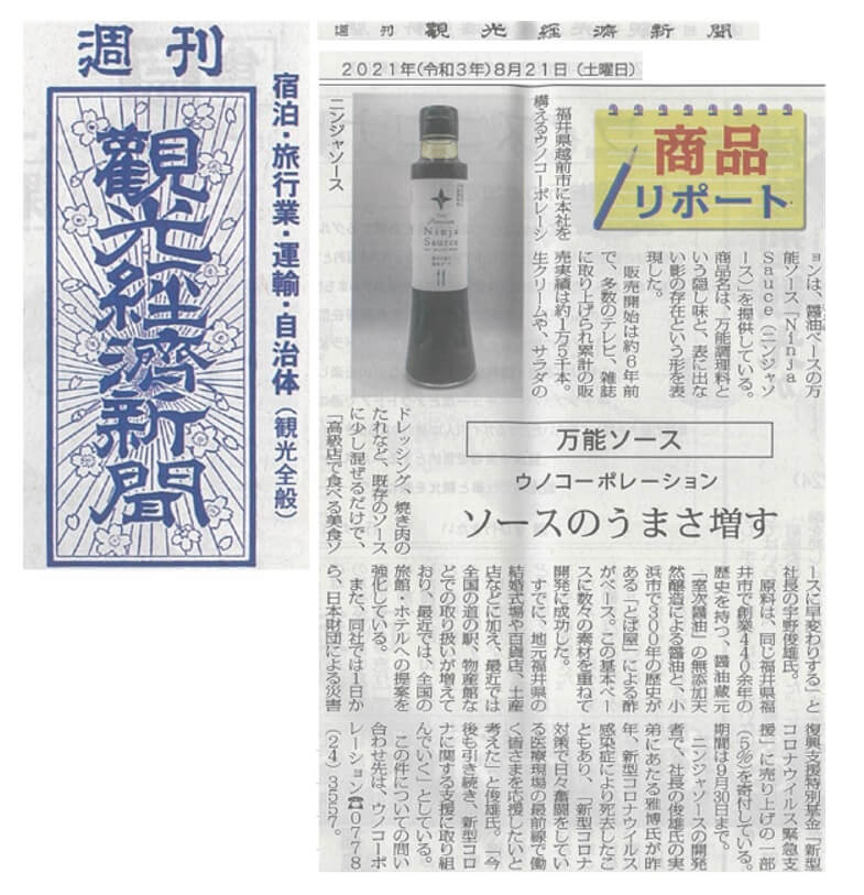 【新聞】観光経済新聞にニンジャソースが掲載されました