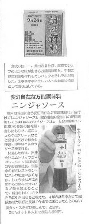 県内で販売している手軽な調味料として、ニンジャソースが朝日新聞に掲載されました。