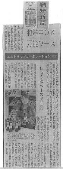 「和洋中OK万能ソース」福井新聞に掲載されました