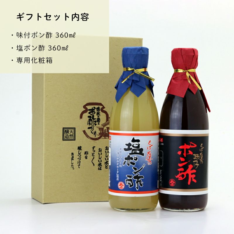 とば屋の調味酢をセットにまとめました。1本から6本まで、お好きな組み合わせを選べるギフトもご用意しております。